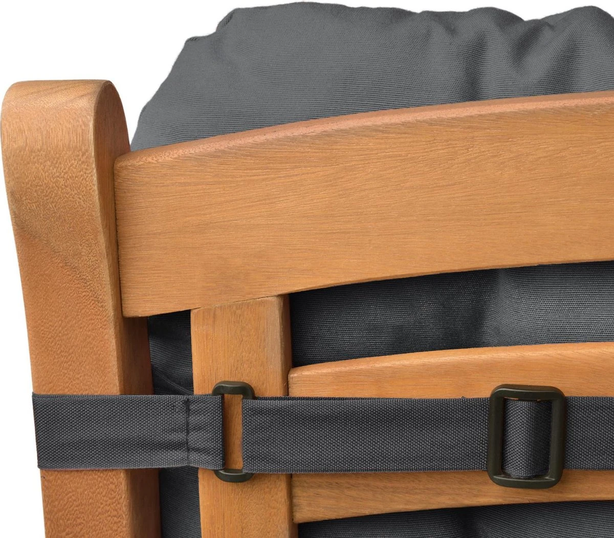 Voor eenvoudige bevestiging van deze kussens is op de achterkant een bevestigingsband aangebracht. Bovendien zijn aan het zitkussen links en rechts bevestigingskoorden voor het vastzetten van het zitkussen, zodat het kussen altijd passend en slipvast ligt.