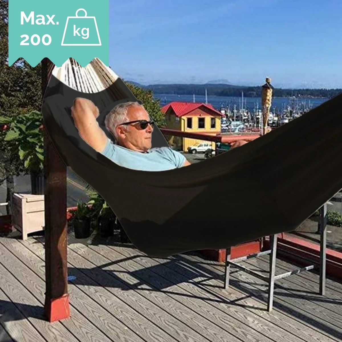 Dubbele Hangmat Zwart Met Spreidstok – 1 Of 2 Persoons – Lig Oppervlak 190x150cm – Lengte 260cm