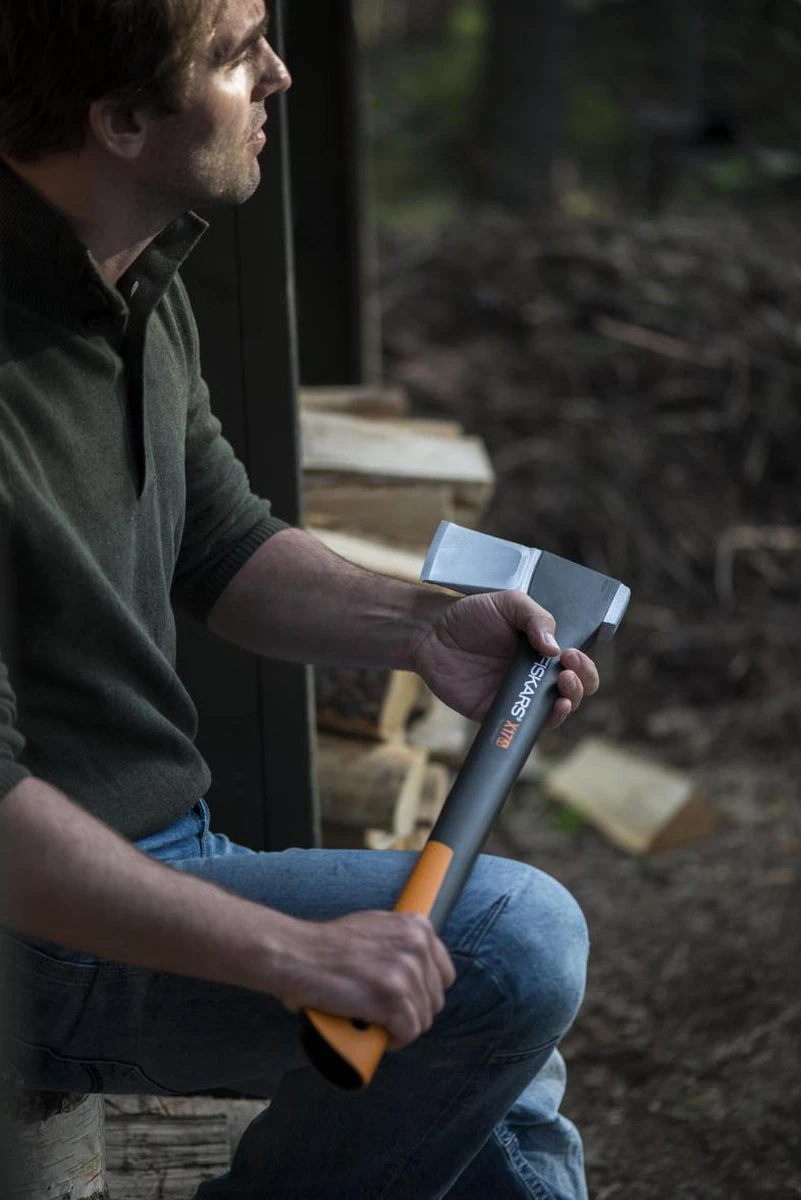 De Fiskars Kloofbijl X17 is een allround bijl voor het snel en effectief kloven van kleine en middelgrote boomstammen of brandhout. De 1090 gram keilvormig gesmede bijlkop is middels een onoplosbare verbinding verbonden aan de met glasvezel versterkte steel voor een verhoogde zekerheid. Met zijn 60 centimeter lengte en totale gewicht van slechts 1570 gram is de X17 prima langdurig te hanteren. De bijlkop beschikt over een teflonlaag waardoor je minder weerstand ervaart.