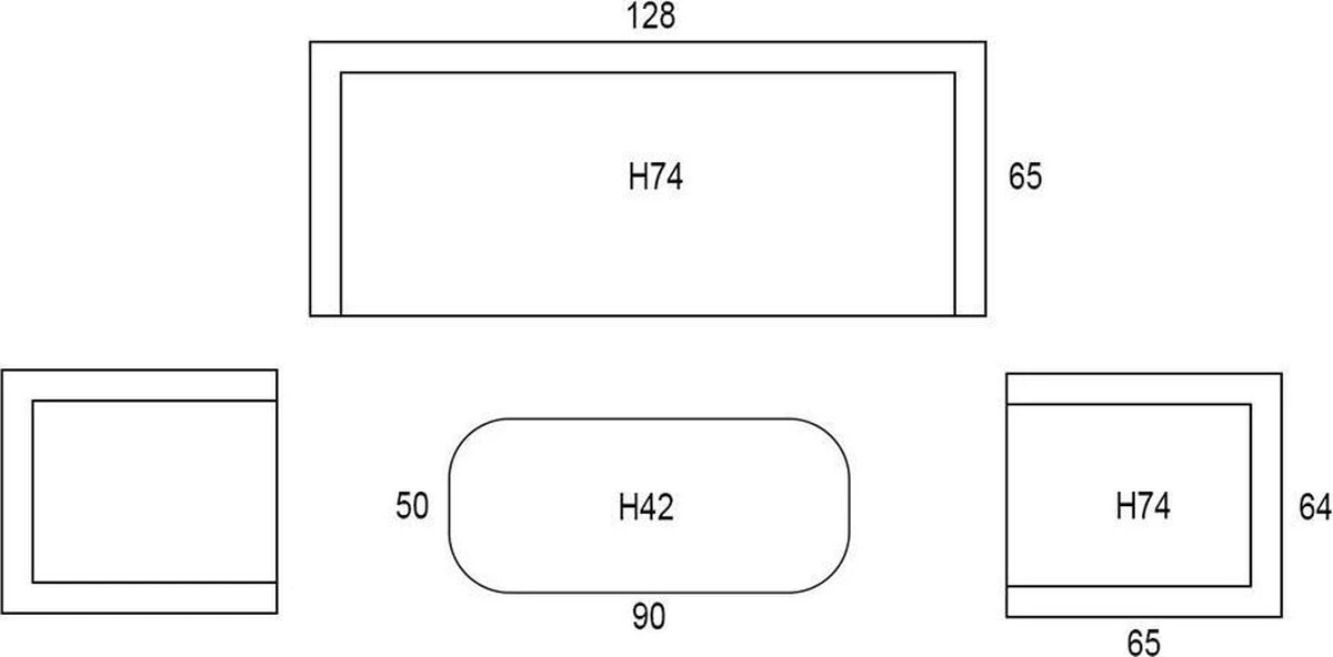 • Afmeting salontafel: 90 x 50 x 42 cm