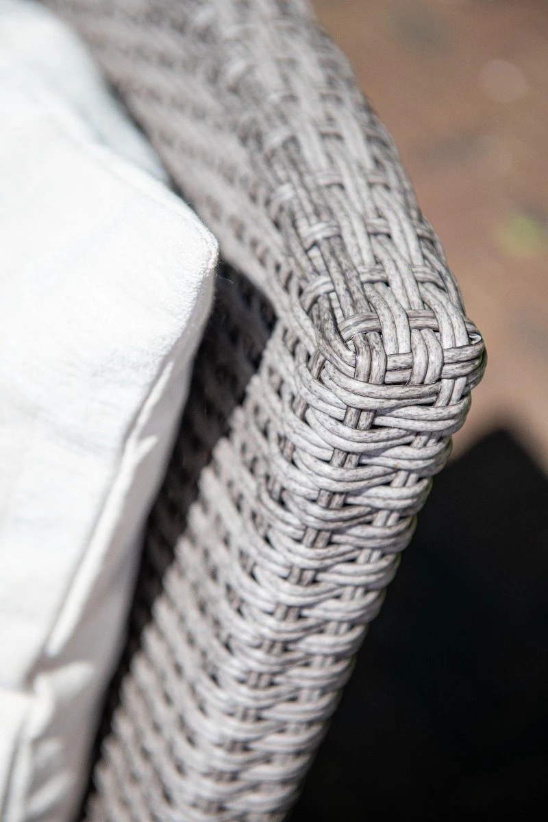 Ben je op zoek naar een comfortabele loungeset om heerlijk in te kunnen ontspannen, maar ook lekker in kunt eten? Met de Jaru lounge dining set hoef je geen moeilijke keuze meer te maken tussen een dining set of een loungeset. Deze mooie en ruime lounge dining set heeft het allebei! Deze set is vervaardigd uit een onderhoudsvrij aluminium met daaromheen weerbestendig wicker in de kleur organic grey, waardoor je het hele jaar kunt genieten van deze mooie lounge dining set. Het wicker is gemaakt van een stevig kunststof waardoor de set zeer duurzaam is. Deze set wordt compleet geleverd met hoogwaardige kwaliteit polyester zit- en rugkussens. De zitkussens zijn bovendien voorzien van een rits, waardoor de hoesjes met de hand gewassen kunnen worden. De kussens zijn niet 100% waterdicht, maar zijn wel voorzien van een waterafstotende coating. Dit is vooral erg praktisch als er bijvoorbeeld op het kussen wordt gemorst met drinken. Je veegt het vocht er namelijk gemakkelijk weer af. Na gebruik kunnen de kussens opgeborgen worden in de schuur of in een kussenbox. De ruime bijpassende lounge dining tafel is voorzien van een mooie geharde glasplaat. Deze lounge diningset bestaat uit twee losse bankdelen, een tafel en twee krukjes. De bankdelen kunnen aan de onderzijde door middel van clips eenvoudig aan elkaar vast worden gezet. Na ontvangst van de set moet alleen één armleuning en het onderstel van de tafel gemonteerd worden, dit is uiteraard eenvoudig zelf te doen. De Jaru lounge dining set is leverbaar in diverse kleurstellingen. De afmetingen van deze setopstelling zijn: L 255 x B 205 x H 85 cm. De tafel is 150 cm lang en 80 cm breed.