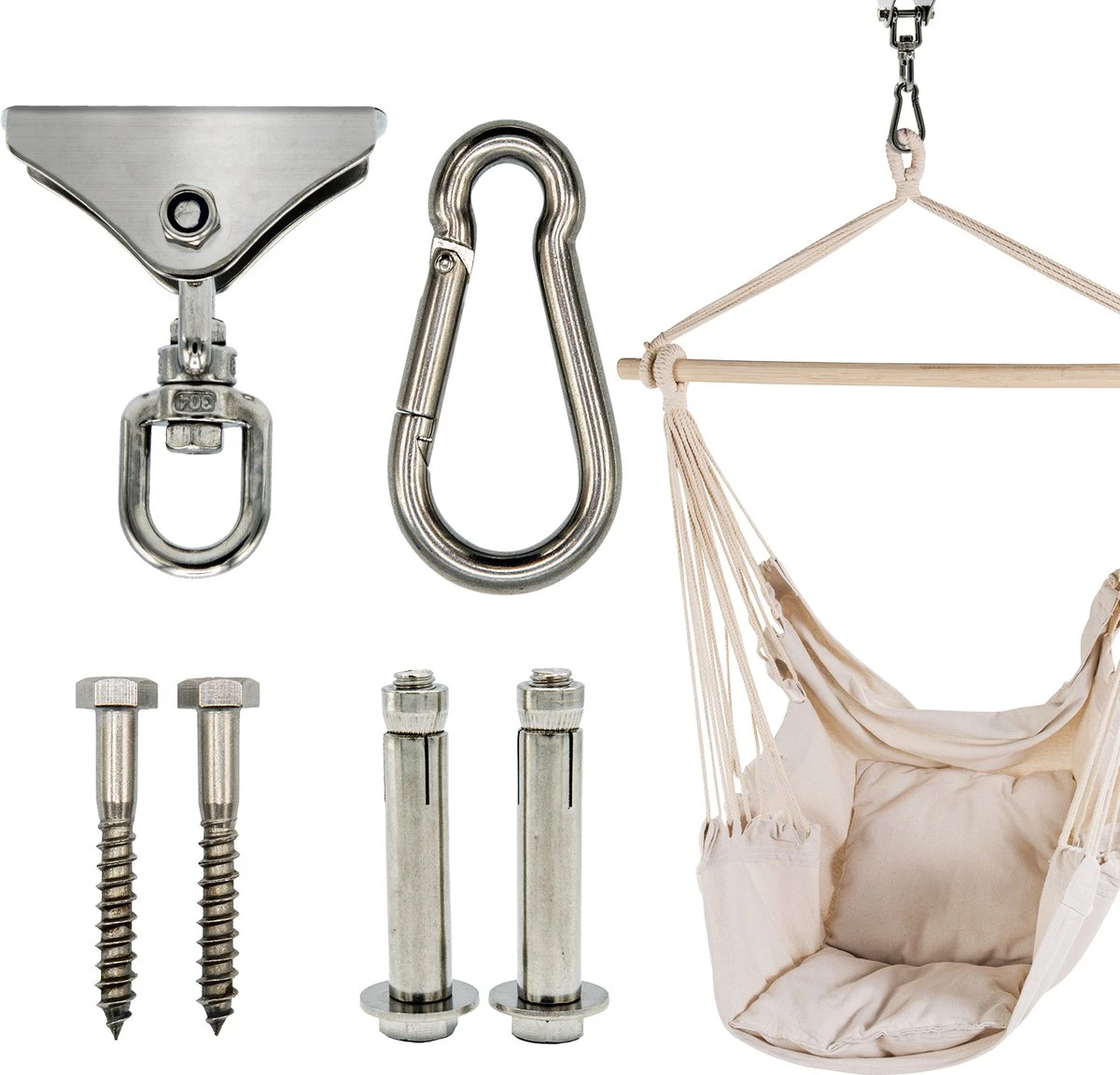 Het luxe ophangsysteem is niet alleen erg duurzaam, maar is ook nog eens multifunctioneel bruikbaar. Wij maken het ophangen van jouw hangstoel, schaduwdoek, of bokszak zo eenvoudig mogelijk. Geniet nu van de voordelen van onze hoogwaardige plafondhaak!