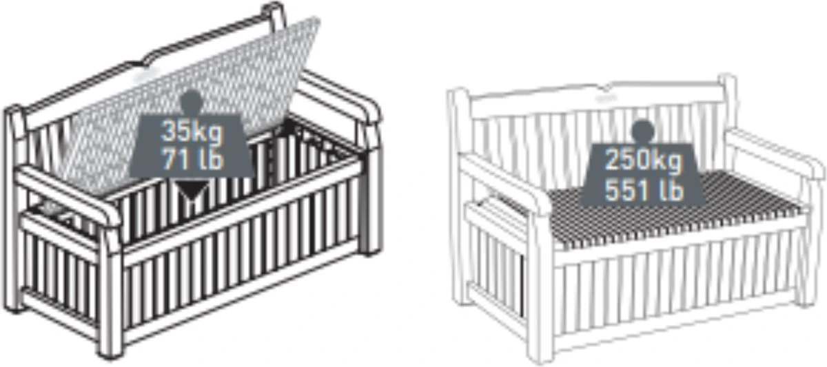 Keter Eden Garden Bench Opbergbank – 265L – 140x60x84cm – Zwart/Grijs