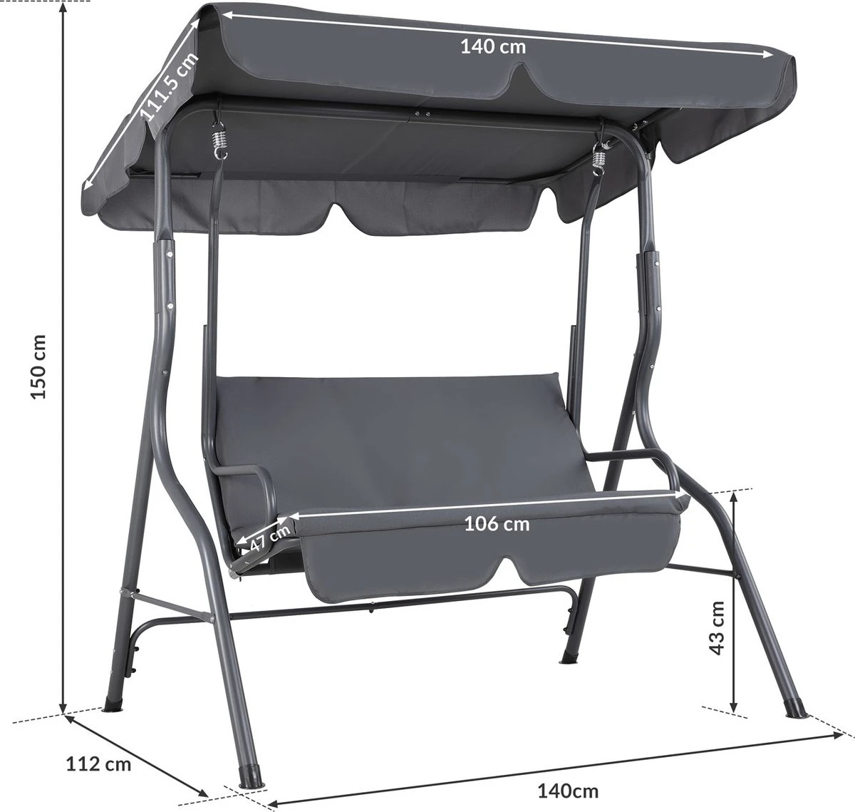 - Totale afmetingen (BxDxH): 140 x 112 x 150 cm