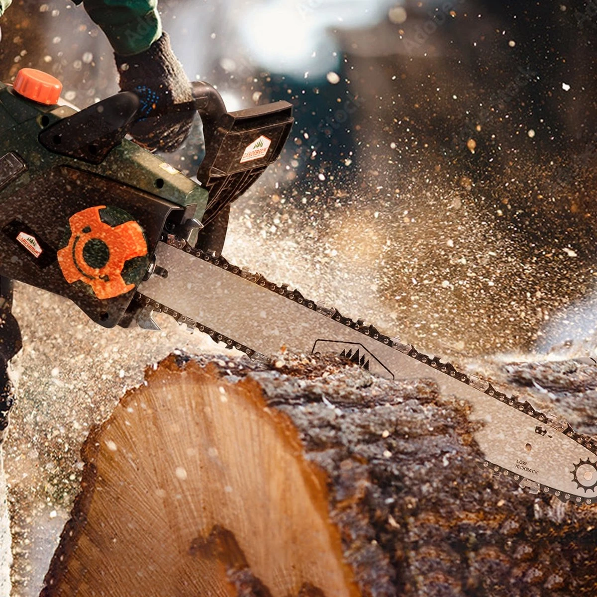 De ketting van het merk Gardebruk is minder gevoelig voor schade veroorzaakt door vuil. Tevens komt na elke snijtand slechts één verbindingsschakel. Zo zijn er meer snijtanden beschikbaar die een grote invloed hebben op de zaagprestaties.