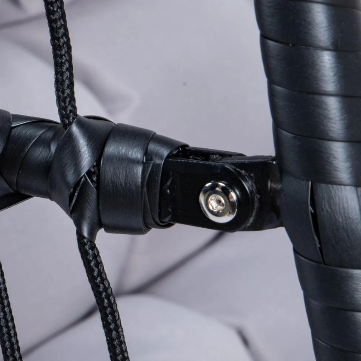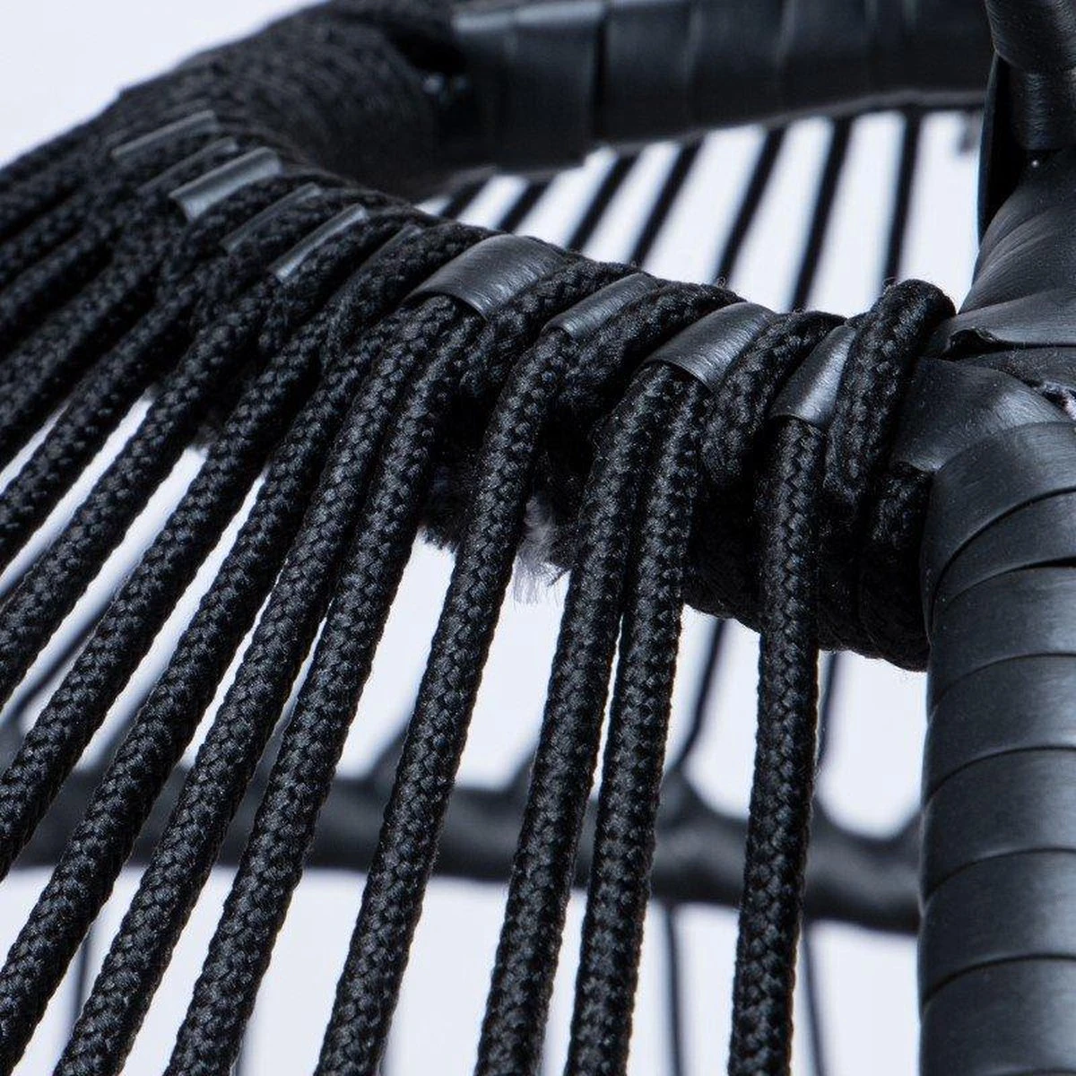 Merkloos Hangstoel Norway – Zwart Wicker & Touw Luxe Egg Hangstoel Met Dikke Antraciete Kussens Met Frame – Inklapbare Basket