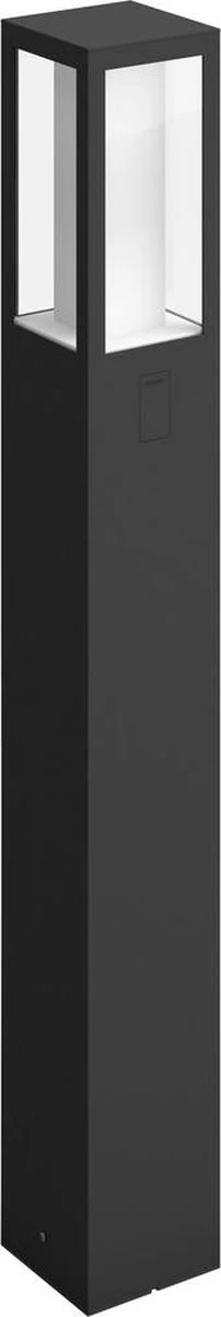 De strakke vormgeving van de hoge zwarte Philips Hue Impress White and color ambiance sokkellamp past in allerlei buitenomgevingen. De ingebouwde LED-verlichting achter de glazen panelen levert licht in 16 miljoen kleuren en laat zich eenvoudig bedienen als je de lamp verbindt met een Philips Hue Bridge. Via de Philips Hue app op je smartphone of tablet beschik je dan over tal van slimme lichtfuncties zoals bediening op afstand (als je niet thuis bent), timers en geofencing-technologie. Dat betekent dat de buitenverlichting automatisch aangaat als je je huis nadert. De lamp is bovendien weerbestendig met een IP44-classificatie, dus je hoeft je geen zorgen te maken over regen en wind.