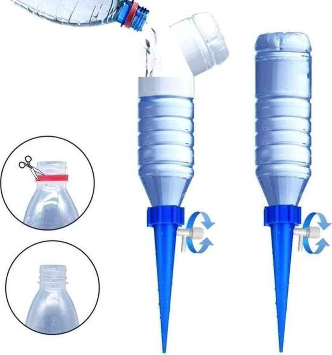 Het wordt je enorm gemakkelijk gemaakt, je vult de fles met water en draait deze op het product. Vervolgens stop je het systeem in de grond en draai je de druppelaar op het gewenste aantal druppels. Past op alle normale grote petflessen!