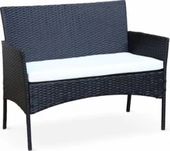 Loungeset 5 Plaatsen Van Aluminium En Eucalyptus – NAZCA – Antraciet Structuur, Lichtgrijs Kussens