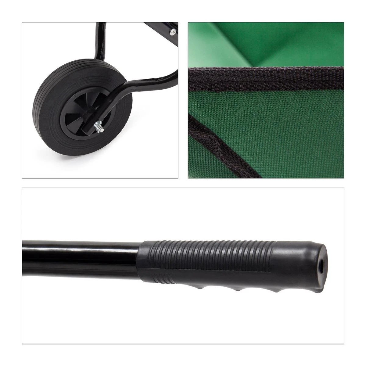 De wagen heeft een capaciteit van ca. 50 liter en laat zich na gebruik makkelijk samenvouwen en met klittenband veilig opbergen. Door de extra greep kun je de kruiwagen niet alleen makkelijk transporteren maar ook ruimtebesparend ophangen.
