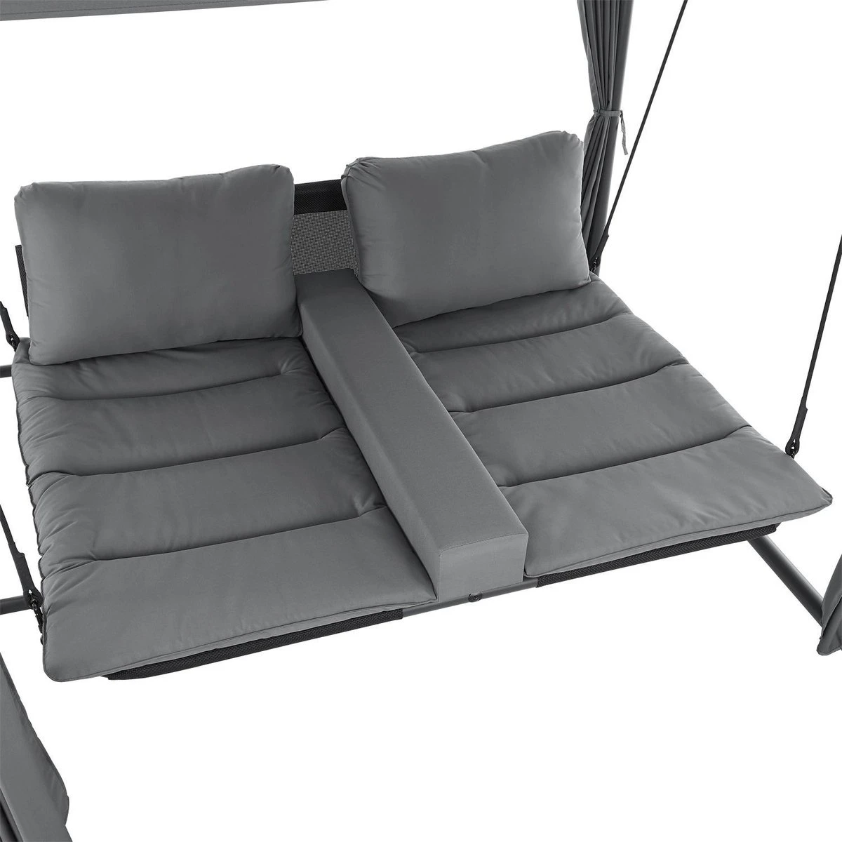 Het elegante schommelbed Kassandra is het nieuwe middelpunt van je tuin om je voeten op te leggen en te genieten van de zomer. Ontworpen in de stijl van een Balinees bed, zorgt het voor ontspannen schommelen dankzij het vrij hangende ligvlak. Modern en exotisch, zoals op vakantie in de Stille Zuidzee, zal deze tuinligstoel een blikvanger zijn in elke wellness-oase. Het dak en de gordijnen aan weerszijden zorgen voor veel privacy en beschermen tegelijkertijd tegen te veel zon en lichte wind. Ontworpen voor 2 personen, kunt u samen ontsnappen aan het dagelijkse leven en wegzweven als op wolken.