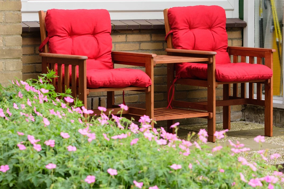 Deze Twinseat is de ideale duo-tuinstoel om z’n tweetjes gezellig buiten te zitten.